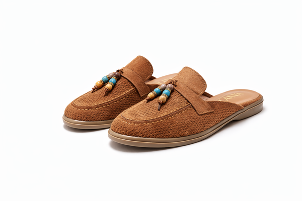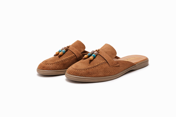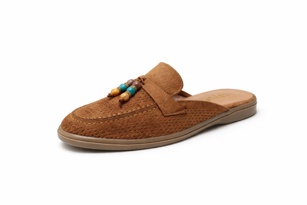 Mules en suède perforé à perles